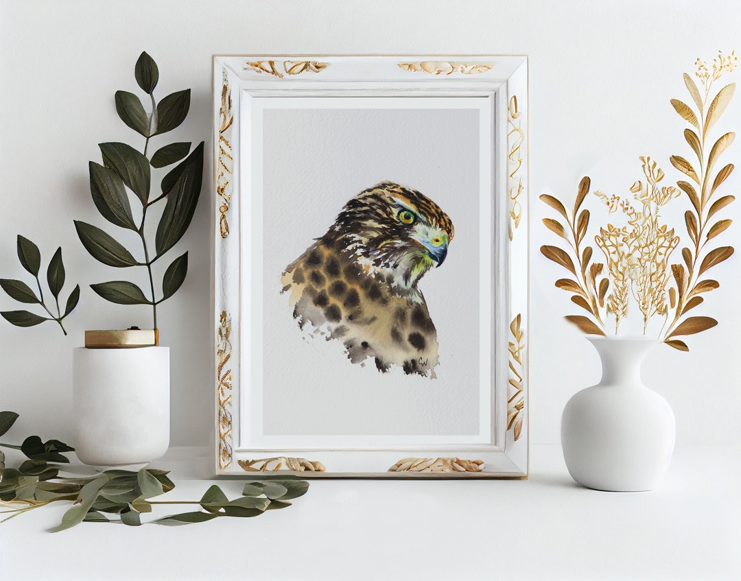 A series of 7 hawk portraits portrayed in watercolour.