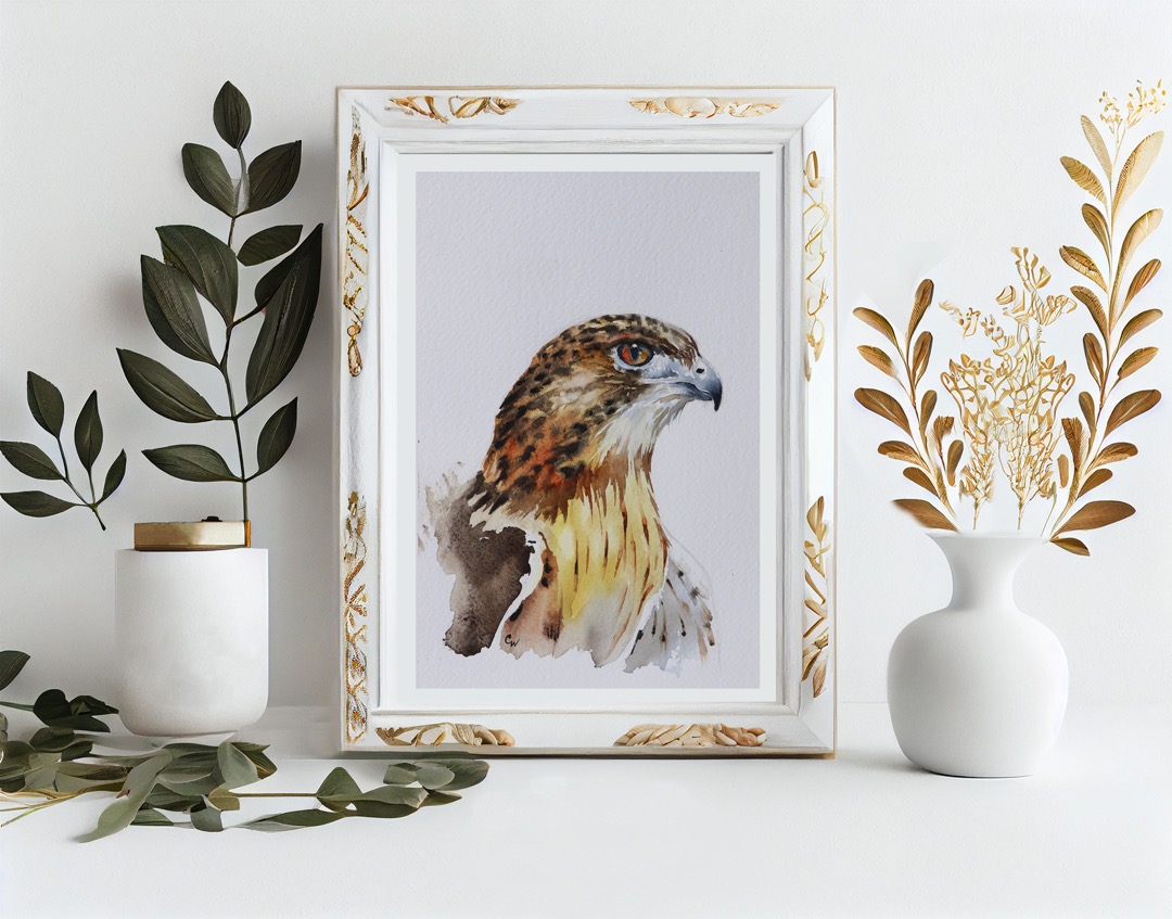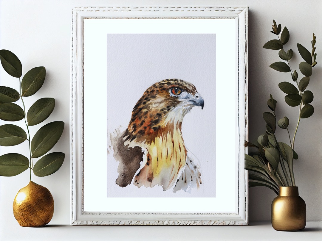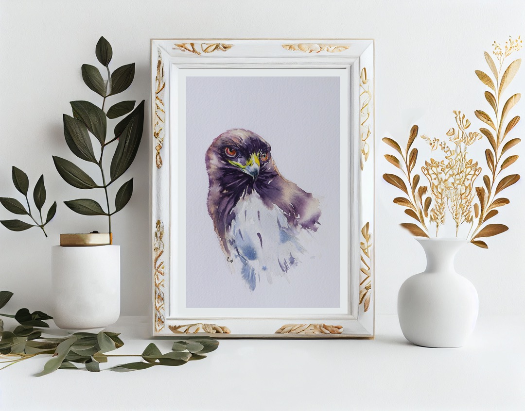 A series of 7 hawk portraits portrayed in watercolour.